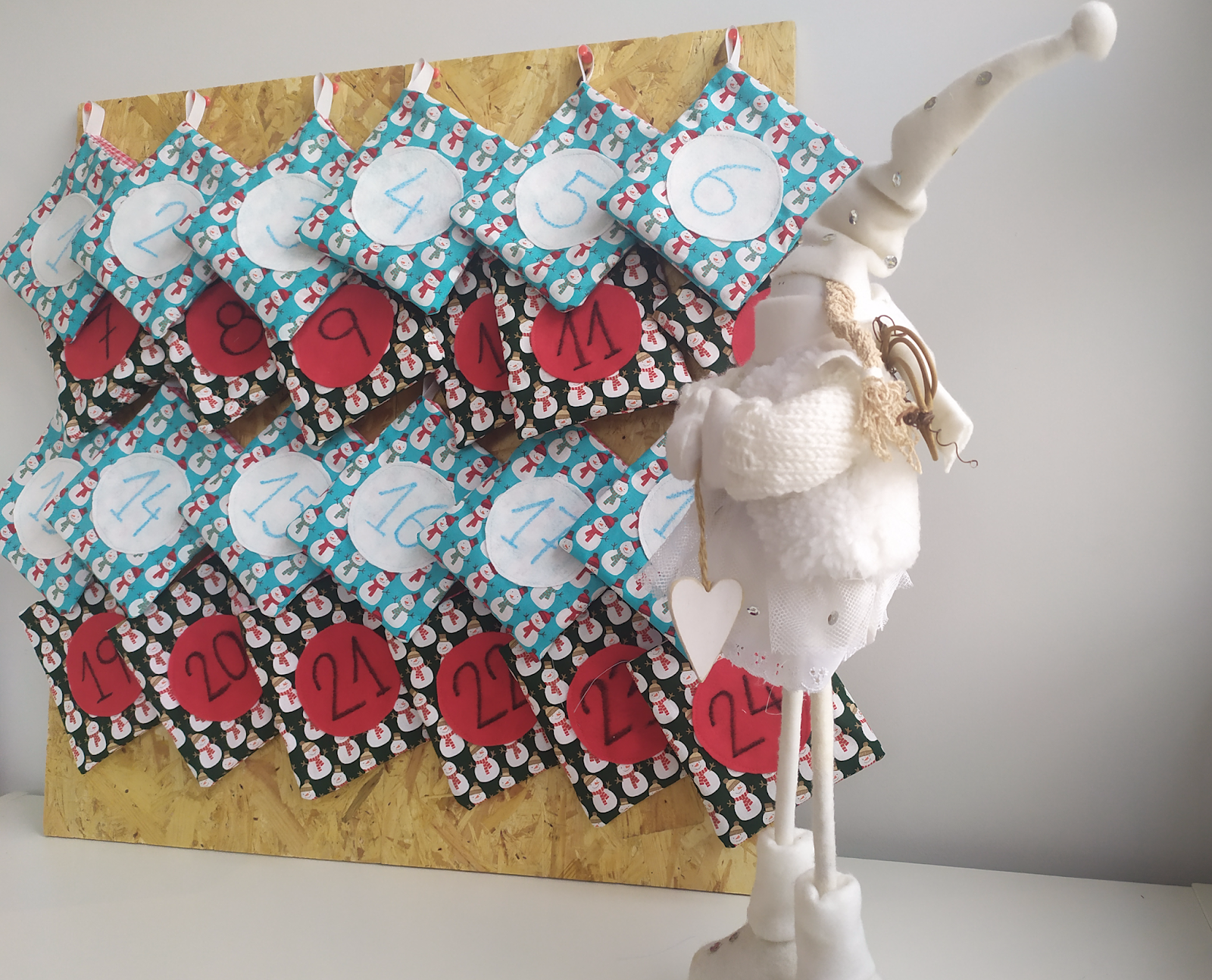 Me costo encontrar la idea que se adaptara a nuestro ritmo de vida, y que pudiésemos llevarlo con nosotros aunque no pasemos la noche en casa y así tener la sorpresa todos los días. Quería un calendario de adviento movil y dinámico, estoy encantada con el resultado.